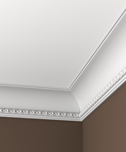Потолочный карниз Европласт изготовлен из прочного и легкого материала пенополиуретана, применяется внутри помещений. Данные изделия не подвергаются гниению и не могут стать пристанищем для все возможных болезнетворных микроорганизмов. Влагостойкие, абсолютно нет реакции на влагу. Срок службы долговременный — не менее 10 лет. Возможность распилить изделие простой ножовкой. Простой монтаж с применением клея или саморезов. После монтажа окрашиваются любыми красками на водной основе.