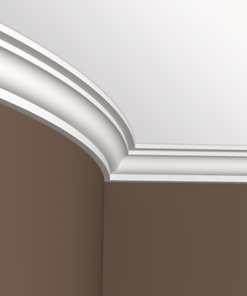 Потолочный карниз Европласт изготовлен из прочного и легкого материала пенополиуретана, применяется внутри помещений. Данные изделия не подвергаются гниению и не могут стать пристанищем для все возможных болезнетворных микроорганизмов. Влагостойкие, абсолютно нет реакции на влагу. Срок службы долговременный — не менее 10 лет. Возможность распилить изделие простой ножовкой. Простой монтаж с применением клея или саморезов. После монтажа окрашиваются любыми красками на водной основе.