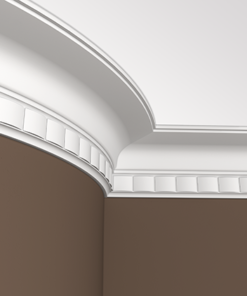 Потолочный карниз Европласт изготовлен из прочного и легкого материала пенополиуретана, применяется внутри помещений. Данные изделия не подвергаются гниению и не могут стать пристанищем для все возможных болезнетворных микроорганизмов. Влагостойкие, абсолютно нет реакции на влагу. Срок службы долговременный — не менее 10 лет. Возможность распилить изделие простой ножовкой. Простой монтаж с применением клея или саморезов. После монтажа окрашиваются любыми красками на водной основе.