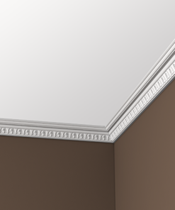 Потолочный карниз Европласт изготовлен из прочного и легкого материала пенополиуретана, применяется внутри помещений. Данные изделия не подвергаются гниению и не могут стать пристанищем для все возможных болезнетворных микроорганизмов. Влагостойкие, абсолютно нет реакции на влагу. Срок службы долговременный — не менее 10 лет. Возможность распилить изделие простой ножовкой. Простой монтаж с применением клея или саморезов. После монтажа окрашиваются любыми красками на водной основе.