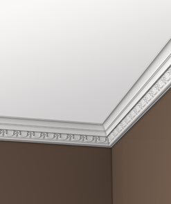 Потолочный карниз Европласт изготовлен из прочного и легкого материала пенополиуретана, применяется внутри помещений. Данные изделия не подвергаются гниению и не могут стать пристанищем для все возможных болезнетворных микроорганизмов. Влагостойкие, абсолютно нет реакции на влагу. Срок службы долговременный — не менее 10 лет. Возможность распилить изделие простой ножовкой. Простой монтаж с применением клея или саморезов. После монтажа окрашиваются любыми красками на водной основе.