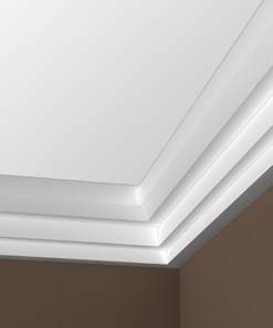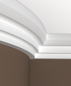 Потолочный карниз Европласт изготовлен из прочного и легкого материала пенополиуретана, применяется внутри помещений. Данные изделия не подвергаются гниению и не могут стать пристанищем для все возможных болезнетворных микроорганизмов. Влагостойкие, абсолютно нет реакции на влагу. Срок службы долговременный — не менее 10 лет. Возможность распилить изделие простой ножовкой. Простой монтаж с применением клея или саморезов. После монтажа окрашиваются любыми красками на водной основе.