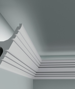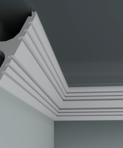Потолочный карниз Европласт изготовлен из прочного и легкого материала дюрополимера, применяется внутри помещений. Данные изделия не подвергаются гниению и не могут стать пристанищем для все возможных болезнетворных микроорганизмов. Влагостойкие, абсолютно нет реакции на влагу. Срок службы долговременный — не менее 10 лет. Возможность распилить изделие простой ножовкой. Простой монтаж с применением клея или саморезов. После монтажа окрашиваются любыми красками на водной основе.