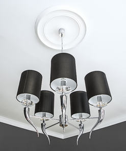 Розетка потолочная Европласт из прочного и легкого материала пенополиуретана, применяется внутри помещений. Данные изделия не подвергаются гниению и не могут стать пристанищем для все возможных болезнетворных микроорганизмов. Влагостойкие, абсолютно нет реакции на влагу. Срок службы долговременный — не менее 10 лет. Возможность распилить изделие простой ножовкой. Простой монтаж с применением клея или саморезов. После монтажа окрашиваются любыми красками на водной основе.